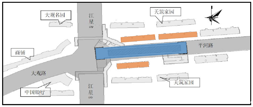 苏州轨道交通六号线江星路站位于江星路与平河路交叉路口东侧,沿平河路东西走向布置。车站总长168.4m,标准段宽22.1m,站台宽度13m,为地下三层岛式站。