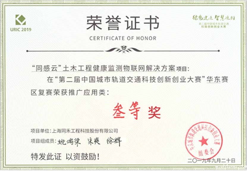 第二届中国城市轨道交通科技创新创业大赛华东赛区复赛三等奖
