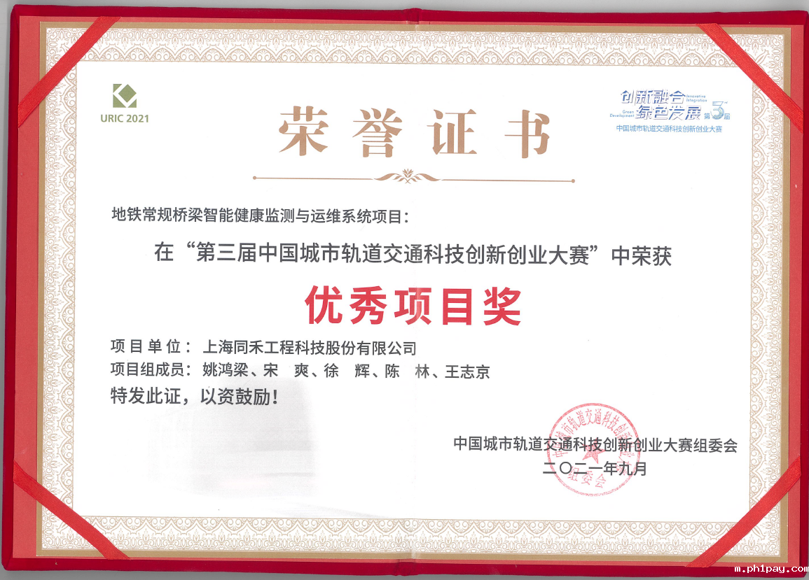 “第三届中国城市轨道交通科技创新创业大赛”优秀项目奖