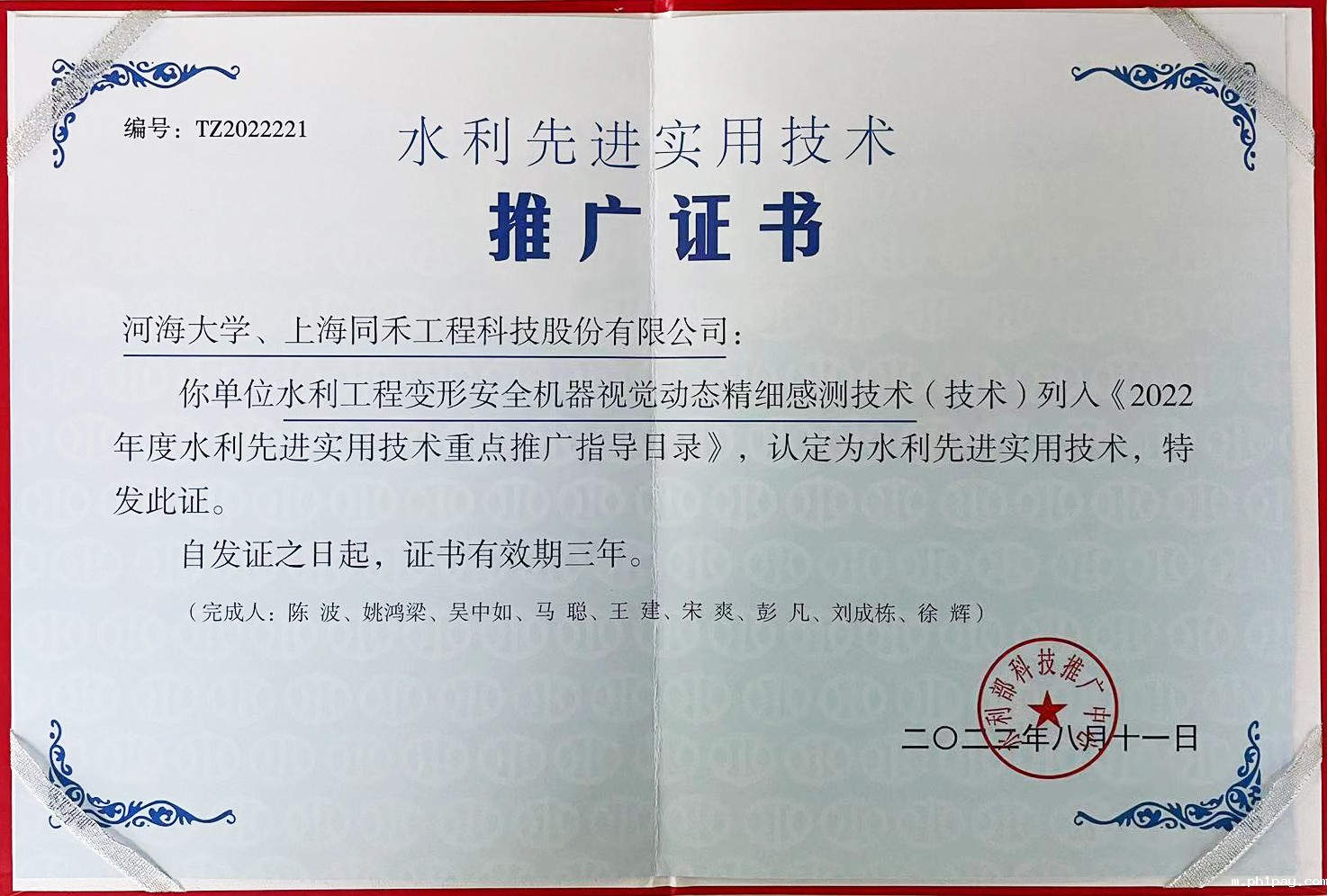 入选水利部《2022年度水利先进实用技术重点推广指导目录》