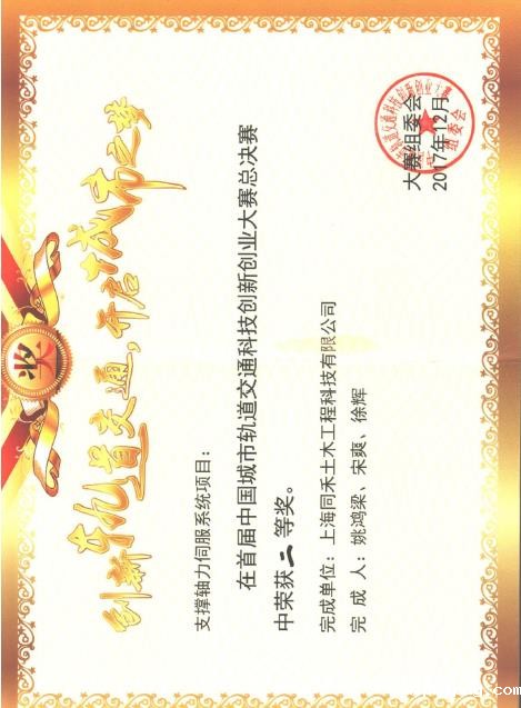首届中国城市轨道交通科技创新创业大赛-推广应用类二等奖