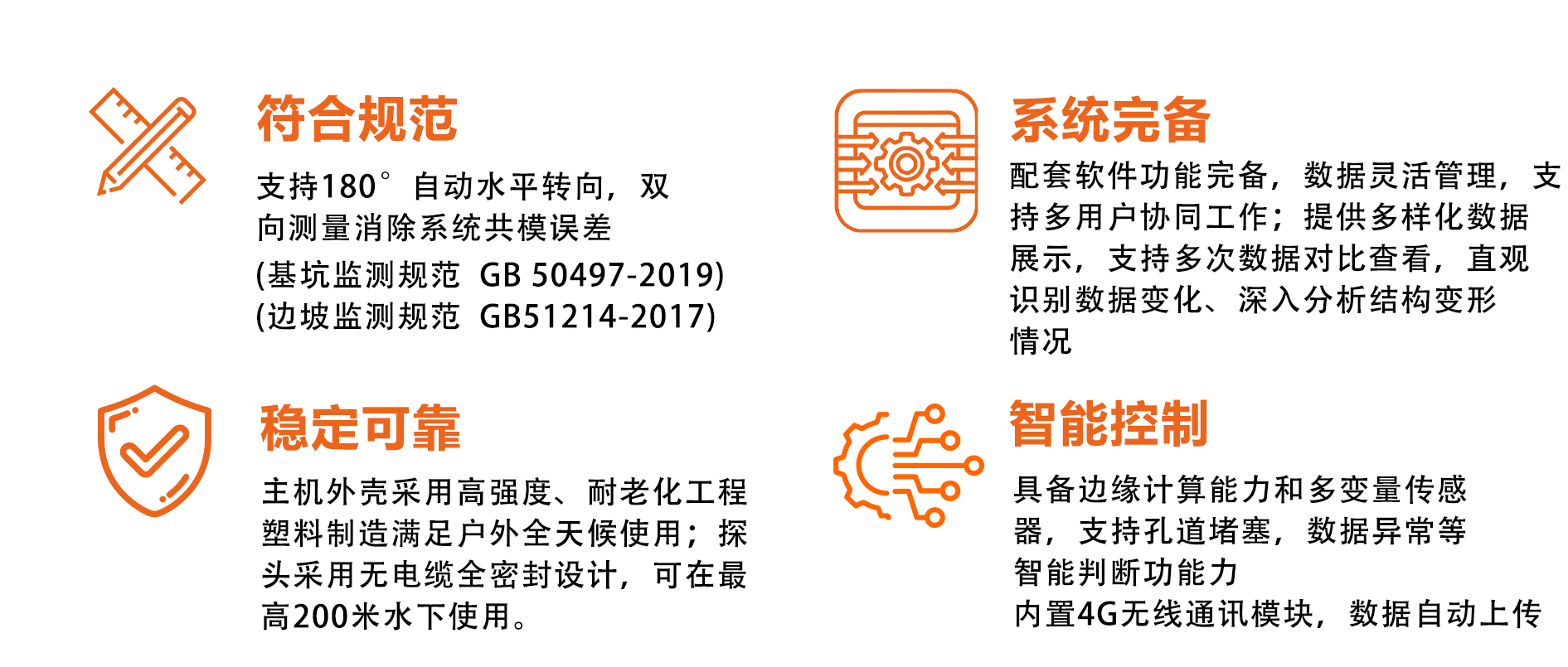 当探头提升至旋转装置内后,可以通过旋转电机,控制探头旋转 180 °,实现边坡、基坑等国家监测技术标准规范(GB50497-2019、GB51214-2017)要求的正反两次测量,并计算两次测量的差值,消除系统共模误差。