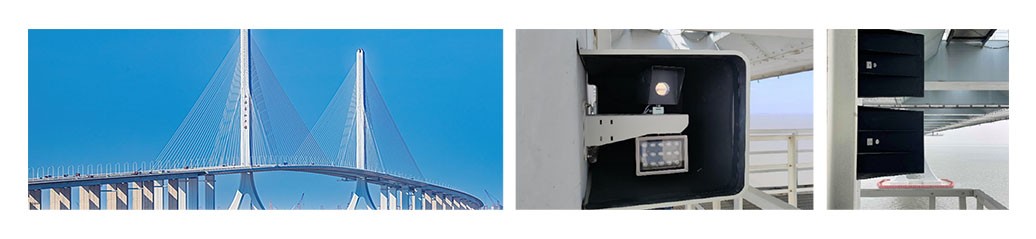 项目采用机器视觉智能测量仪对大桥关键桥墩的位移及关键箱梁的挠度进行健康监测,共使用13台机器视觉智能测量仪和24个靶标。