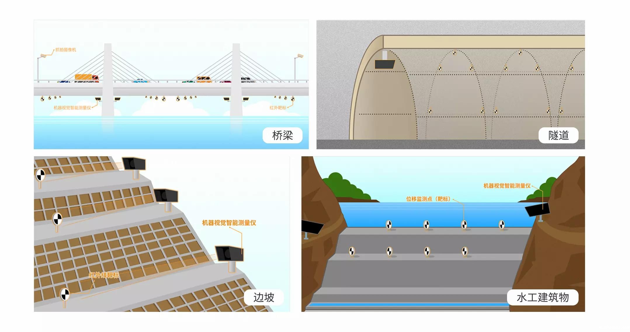 项目采用机器视觉智能测量仪同时监测边坡的沉降和水平位移,共使用11台机器视觉智能测量仪和38个靶标。