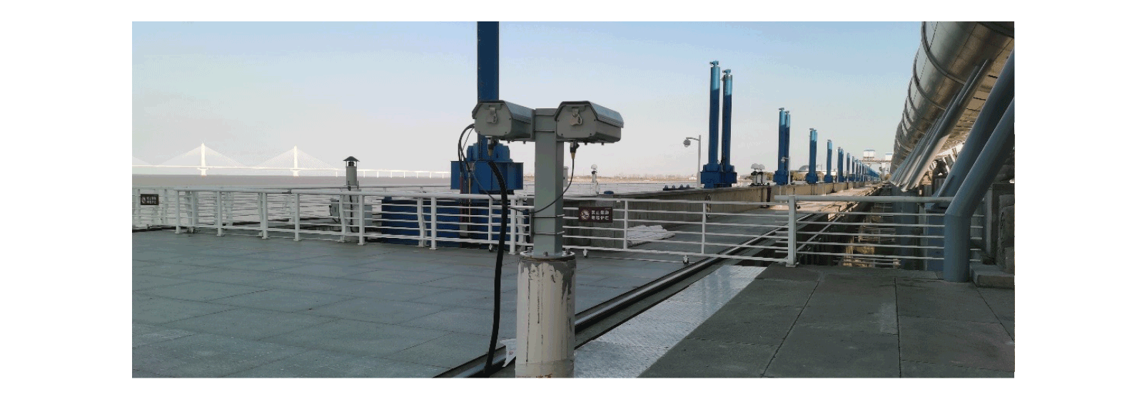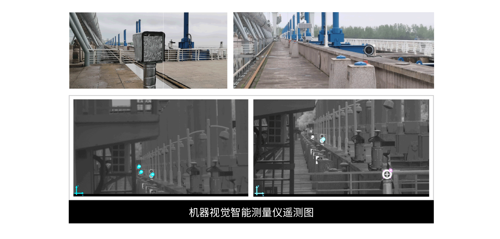 该大闸为中国内河口第一大闸,位于水文地质条件复杂区,其中潮汐影响尤为剧烈,需要实时精确地测量大闸的变形。为确保大闸安全,采用机器视觉智能测量仪同时监测闸体的水平位移与垂直位移。