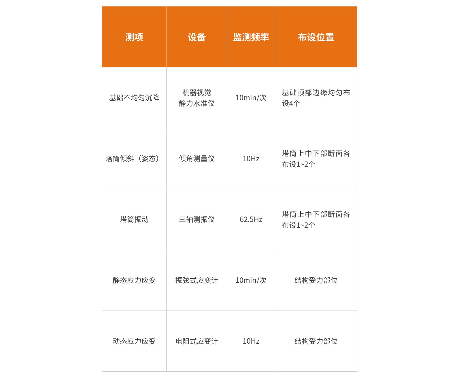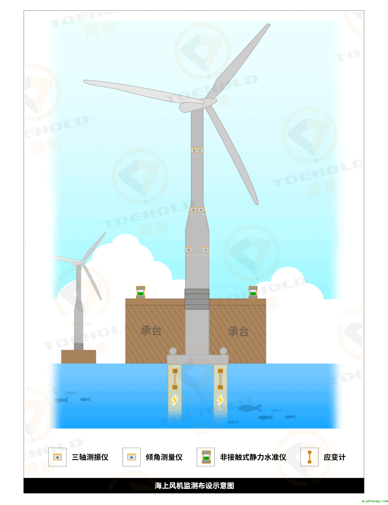 海上风机监测的主要设备为静力水准仪、倾角测量仪、三轴测振仪及应变计。