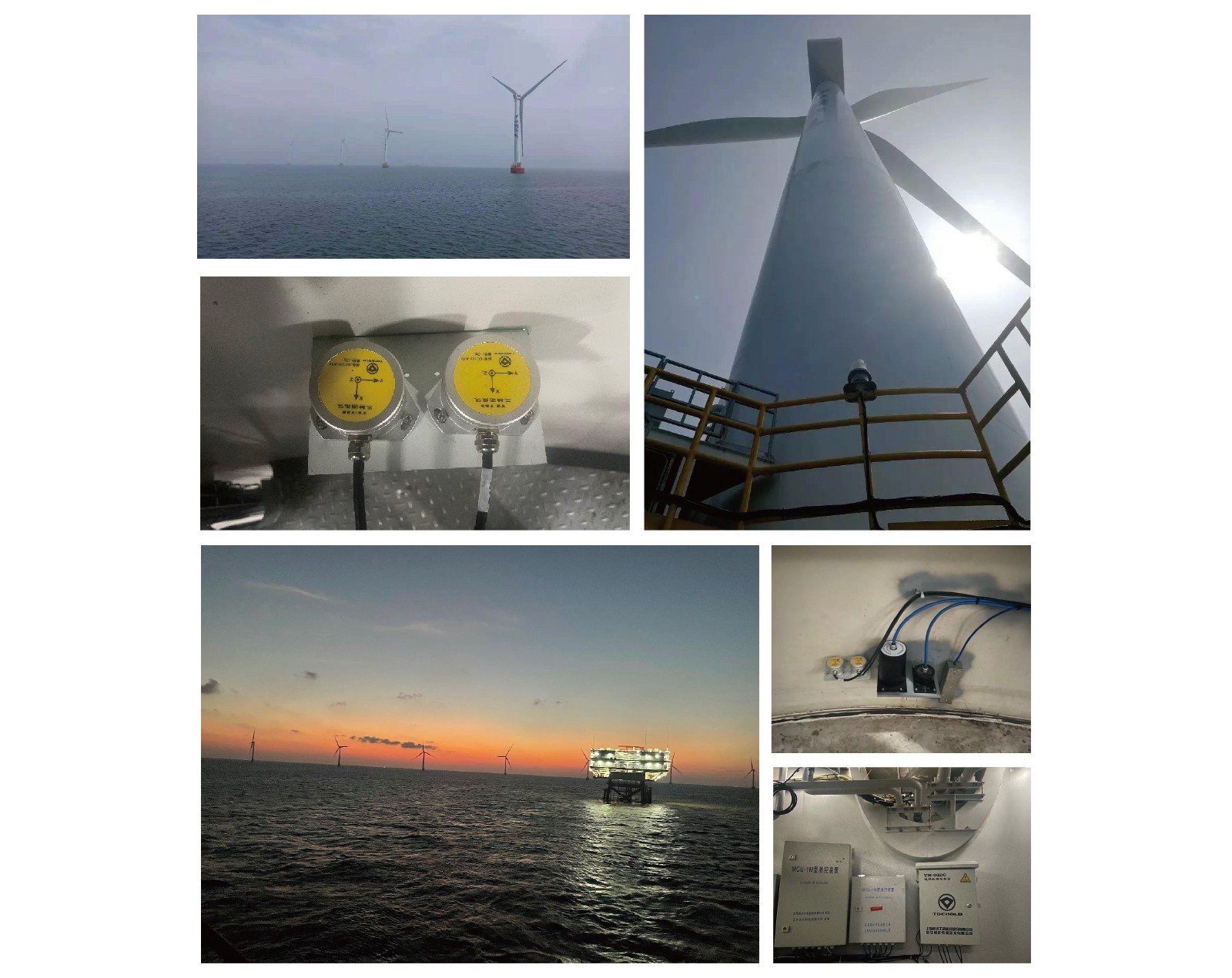 该海上风电工程的装机容量为300MW,由75台单机容量为4MW的风力发电机组、155km的海底电缆以及220kV海上升压站组成。项目对该海上风电场的第37号风机塔筒进行实时振动和倾角监测,布设6台三轴测振仪和3台智能数据网关,通过4G信号将采集的加速度数据传输至同感云数据管理平台,并对监测数据进行分析,为风电工程的运营管理提供数据支持。