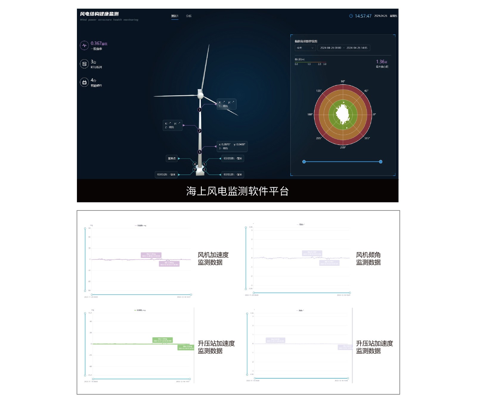 监测系统自安装运行以来,监测数据平稳,结构未发生突然性、持续性倾斜和较大振动,风机与升压站处于稳定状态。