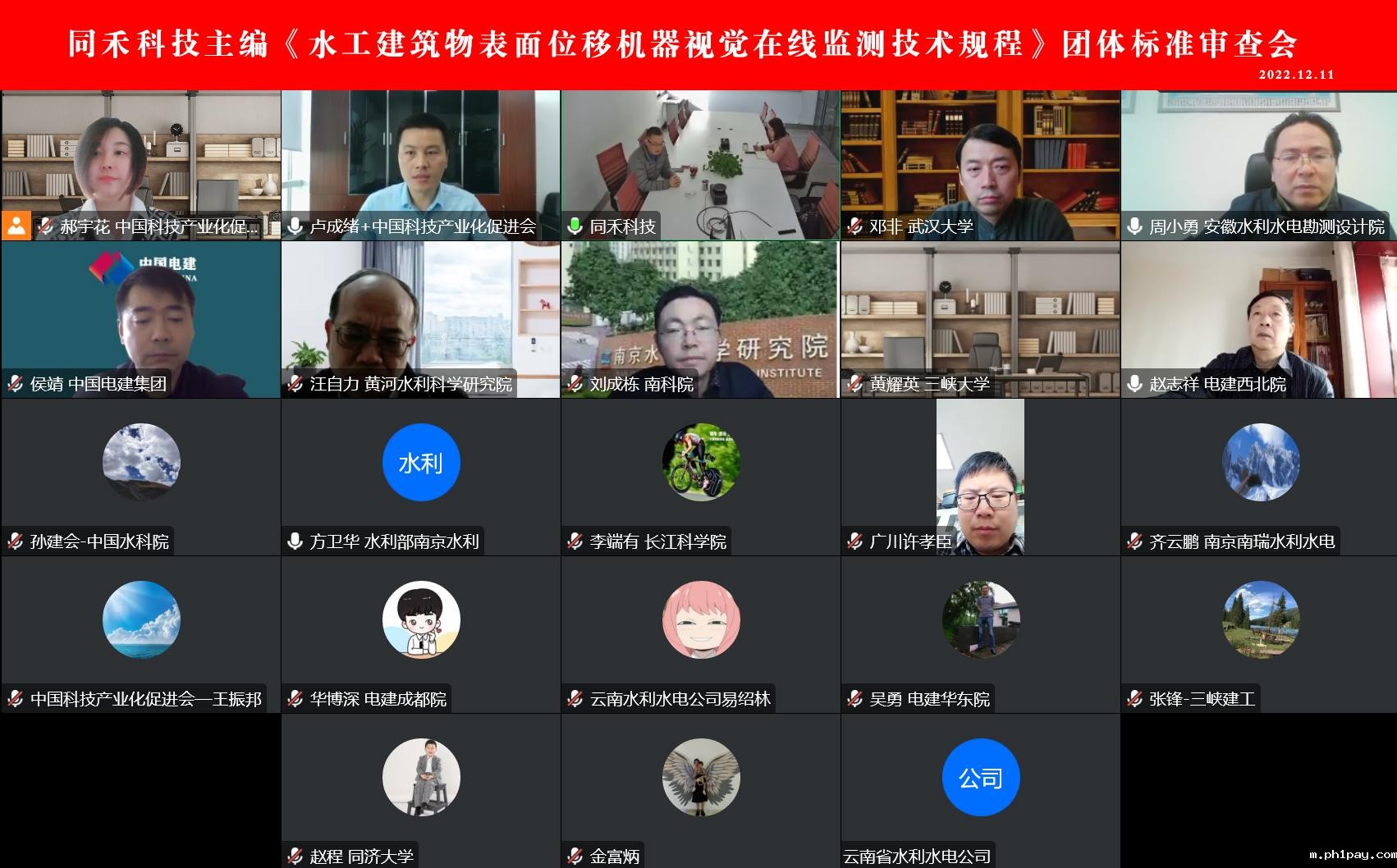 2022年12月11日上午,《水工建筑物表面位移机器视觉在线监测技术规程》团体标准审查会通过视频会议形式召开。