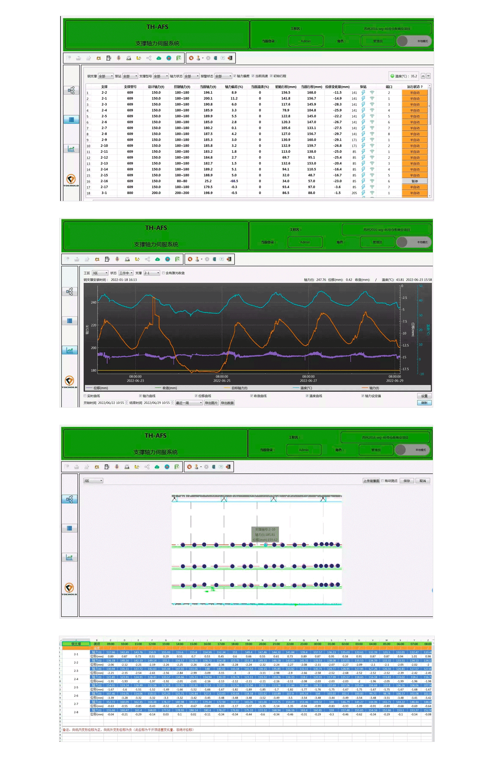 支撑轴力伺服系统由补偿节(含千斤顶)、数控泵站、主机、及软件系统共同组成。数控泵站响应主机控制指令,驱动油路通道连接的千斤顶,并且根据内置油压与位移传感器的测量值适时调控,从而实现油压和行程的双控。每个项目可根据需要任意配置泵站、补偿节(含千斤顶),补偿节独立控制互不影响。自动化程度高,安全可靠。
