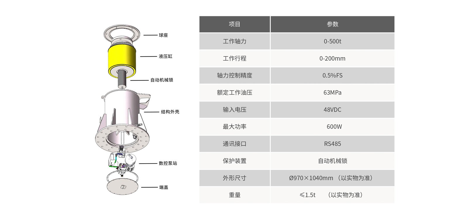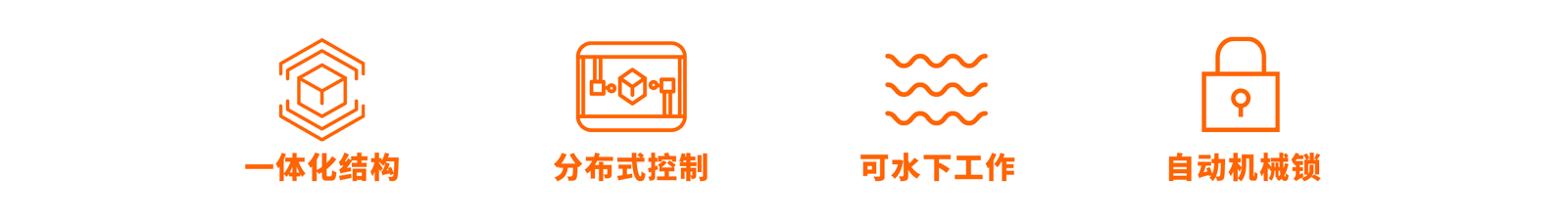 分布式结构,各个支撑头总成互相独立。区别于传统支撑,将支撑结构、控制系统组合在一起,内置嵌入式控制器、液压缸、液压站、传感器,智能化程度高,相比较大型集中式泵站,避免出现因单个油路泄漏或爆管而影响其他支撑的情况,同时避免集成液压站等液压动力元件故障而导致全系统瘫痪的窘境,无管路设计,较大程度分散了系统性风险,提高整体可靠性。防护等级高,可水下工作。